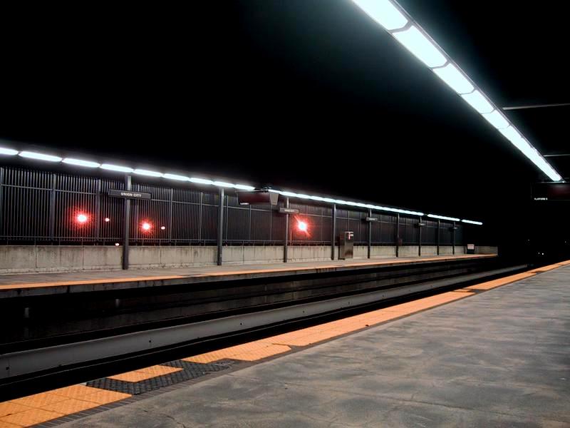 Fremont train stopping at Union City. Since Fremont is at the end of the line, this train will eventually come back and pick me up for my northbound trip.