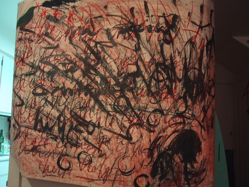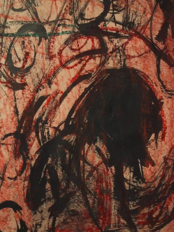 It's just a drawing. Approximately 36x48, in sumi ink, charcoal, conte crayon and oil pastel, with acrylic bird. | |