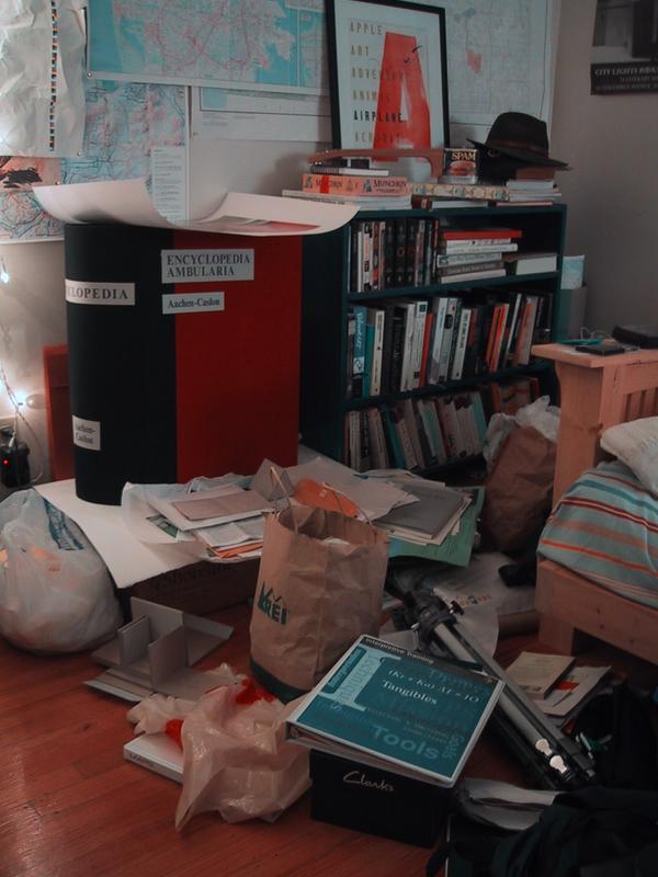 Well, it's not too messy. There be Wallyjoints and an encyclopedia costume, a large print, my NPS manual, a tripod, some tools, a print, hats, an inspected parcel...