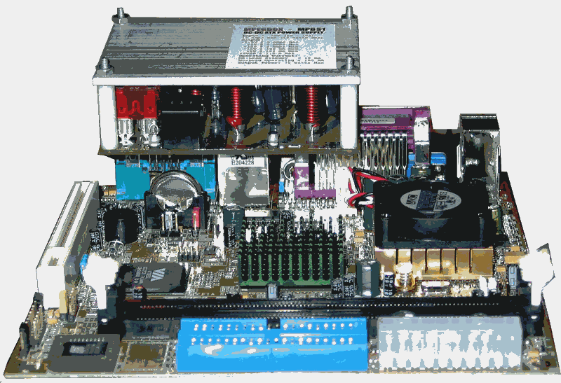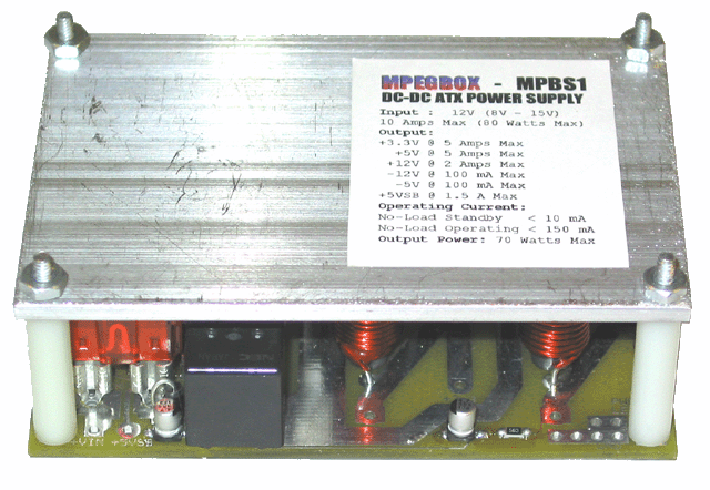 The MPBS1 12-Volt DC-DC Power Supply is a small form-factor power conversion device. With an unregulated 12-volt input range, it provides output voltages of +12, +5, +3.3, -5, -12, and +5Vstandby. The aluminum open frame design allows the unit to be very compact and versatile. Featuring high power density, the unit can deliver up to 70 Watts of output power. The MPBS1 DC-DC Power supply is compatible with many low power commercially available MicroATX, FlexATX, and Micro-ITX Motherboards. Incorporating signals such as PS_ON and PS_OK, the behavior of the MPBS1 compared to a line powered AC-DC ATX power supply is identical.